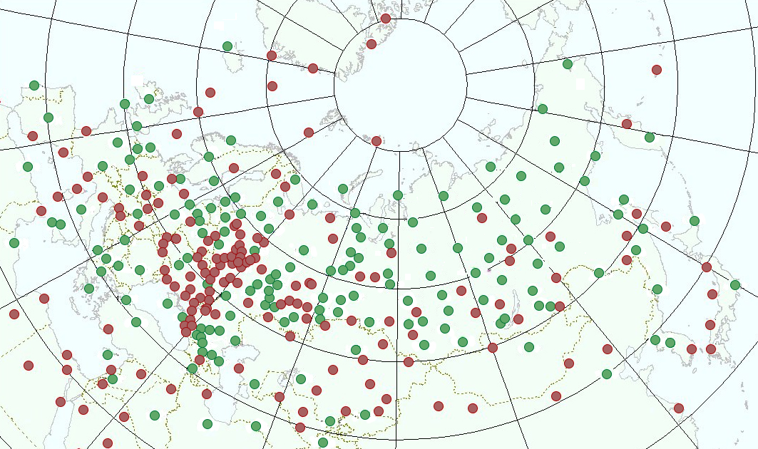 В АРМ ГИС Метео в файле Signs.txt увеличен список станций. Этот файл используется при расчете метеопараметров в компонентах Метеопрогноз, Радиозонд, Прогностическая наноска, Синоптика (обобщения). Ранее список состоял из 278 пунктов, сейчас он увеличен до 380 пунктов. Добавлены пункты северных в южных районах территории России и стран СНГ. Большинство из добавленных пунктов это аэрологические станции, что необходимо для более удобной работы с указанными компонентами.